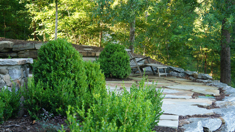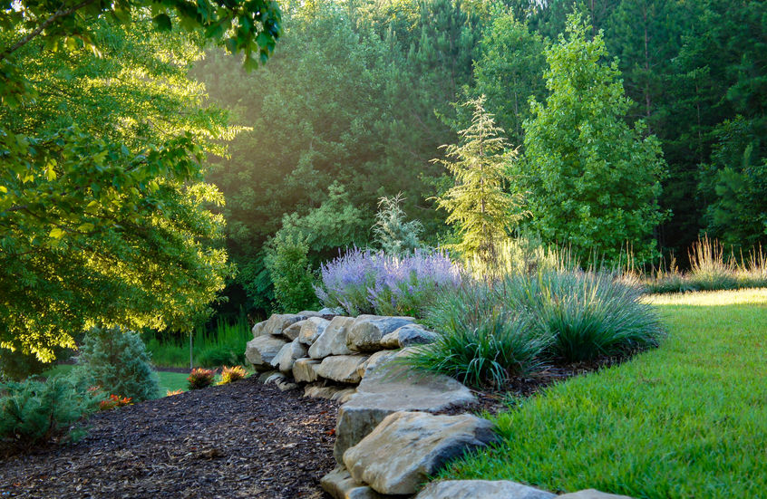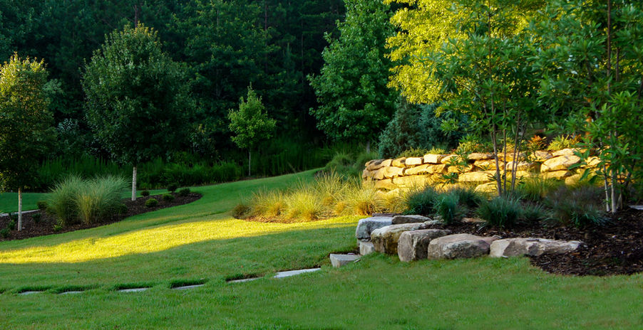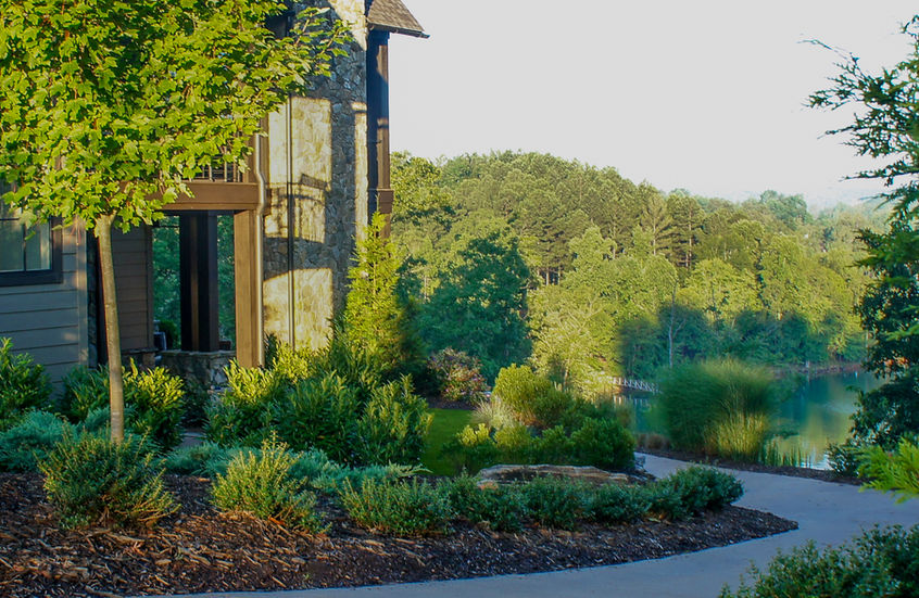 At this Keowee Springs Retreat, we have created a breathtaking landscape framing scenic lake and mountain views. Our deer resistant garden design boasts an array of beautiful plants and flowers that thrive in our local climate. Through this design we have utilized boulder retaining walls to create a stunning perspective from a previously lackluster front yard. A timeless design that will be enjoyed for a lifetime.